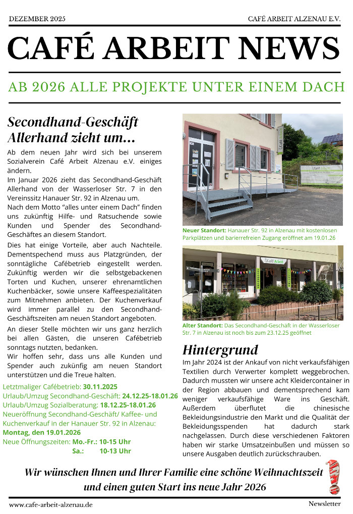 Noch mehr Aktuelles sehen Sie auf unserer Facebook-Seite www.facebook.com/cafe.arbeit.alzenau Die können Sie auch anschauen wenn Sie selber nicht bei facebook sind.