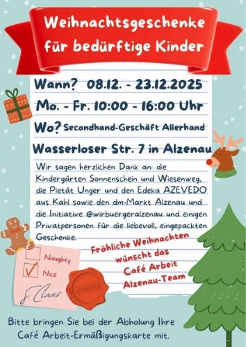 Café Arbeit Alzenau e.V. leisten zu können und danken