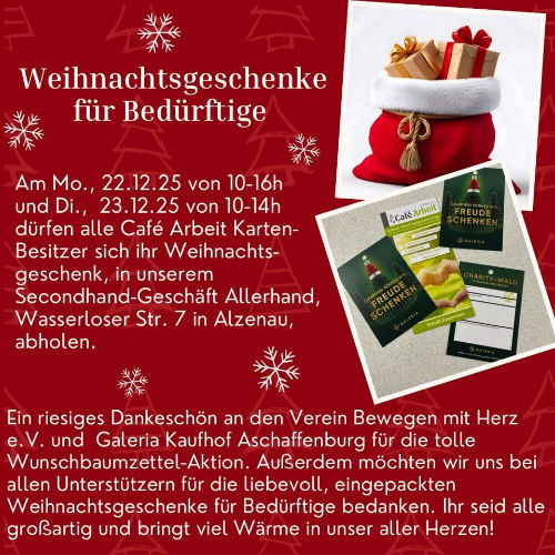 Café Arbeit Alzenau e.V. leisten zu können und danken