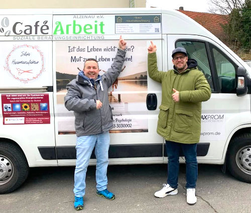 unseres Alzenauer Sozialvereins bedanken. Mit zwei neuen Werbeflächen, ab Oktober auf unserem Transporter,