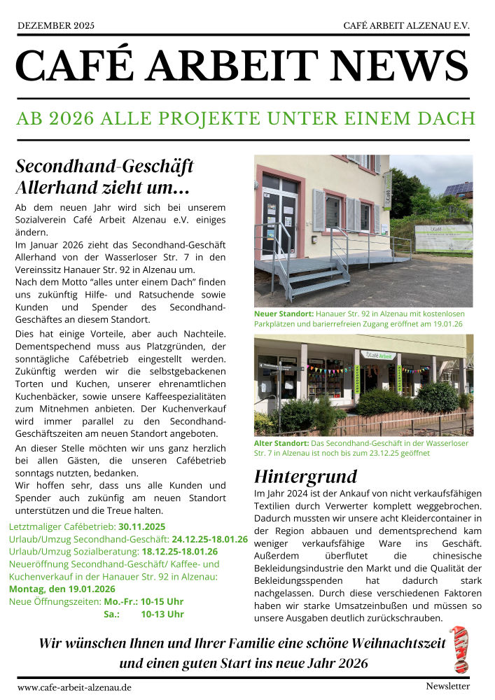 Wir möchten uns ganz herzlich bei Hammer Umzüge Alzenau bedanken. Ohne euch wäre der Umzug, im Januar 2026, unseres kompletten Secondhand-Geschäfts Allerhand von der Wasserloser Straße 7 in die Hanauer Straße 92 in Alzenau nicht möglich gewesen.